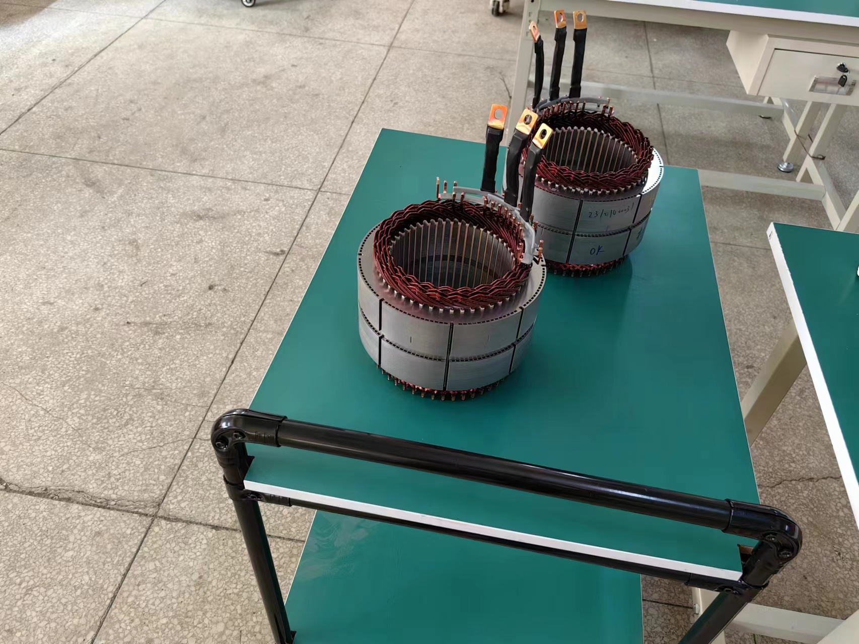 (1)鐵芯上絕緣紙(B形、S形、O型)→(2)漆包扁線下線去漆成U型→(3)異形線定長(zhǎng)下線去漆→(4)異形線成型→(5)星點(diǎn)線焊接→(6)人工預(yù)插線入定子鐵芯→(7)線圈整形壓入鐵芯→(8)非出線端自動(dòng)伺服扭頭并自動(dòng)消除回彈角→(9)非出線端線頭自動(dòng)切平→(10)非出線端自動(dòng)TIG焊接→(11)三相引出線焊接。